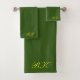 Design as suas próprias toalhas personalizadas, Monogrammed Bath Toel Set para a sua decoração doméstica diária. Transforme seu banheiro em seu próprio oásis pessoal com uma toalha personalizada perfeita para te secar no estilo. Toalha é um presente de excelente para muitas ocasiões, incluindo todos os dias decoração de banho, eventos de casamento, festas de casa, festas de Natal, janta de ação de graças, eventos corporativos e empresariais e muito mais. Mostrada é uma toalha verde colorida personalizável com opção de monograma amarelo. Adicione sua imagem, design, logotipo da empresa ou o que seu coração desejar para suas festividades e comemorações. Detalhes do produto - Conjunto de toalhas de banho Estilo: Dimensões do conjunto de toalhas: inclui toalha de banho de 30" x 60", toalha de mão de 16" x 28" e toalha de washcloth de 13" x 13": a frente é uma mistura de poliéster, a parte traseira é 100% de algodão A impressão vibrante foi projetada para a baixa
