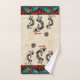 Decorre o seu banheiro com este único "Um dos tipos", no sudoeste de Kokopelli Bath Towel Set! Ele apresenta três sudoeste de Kokopelli tocando flauta e dançando sob o sol em um fundo de arenito de Tan... cercado por uma borda sudoeste em Turquesa, Laranja e Preto! Esta é uma Design de Arte Original do Artista Kerry Miller.