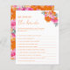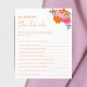 Adicione diversão ao seu evento com este All Eyes no jogo do chá de panela Bride, apresentando um trabalho de arte floral cor-de-rosa e laranja vibrante e um design lúdico. Perfeito para chás de panela, chás de casamento ou festas de solteira, este brilhante jogo de inspiração de jardim testa a memória dos hóspedes do que a noiva está vestindo. Uma atividade divertida e interativa para um verão ou uma celebração de temas florais.