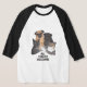 Camiseta Básica, Mangas Raglan 3/4, Branco/Preto, Adulto M