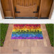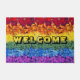 Você receberá uma calorosa recepção com este belo tapete floral WELCOME. Como um jardineiro apaixonado, pensei que seria divertido recriar a bandeira do orgulho mas com uma reviravolta, usando algumas flores do meu próprio jardim e algumas lojas compradas. Eu adoro o quão bem se saiu e eu pensei que a imagem seria divertida numa variedade de itens. Que forma excelente de celebrar esta comunidade incrivelmente diversa e amorosa! Aproveite os Red Gerbera Daisies, Orange Lily, Mães de aranha amarela, Green Sedum, Blue Hydrangeas e Purple Phlox.