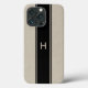 Esse gabinete apresenta o tan como a cor de fundo com listras pretas rodando de cima para baixo. Um monograma bronzeado aparece no centro. Copyright Kathy Henis