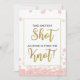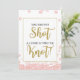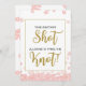Este moderno sinal de festa de despedida de solteira floral "Tome Outro Tiro Ela Está Casando" apresenta um fundo floral rosa com respingos de glitter dourado, personalizado com o nome da noiva. O texto é escrito em uma mistura de uma fonte de caligrafia divertida e uma fonte sans moderna.