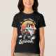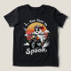 Tolles Halloween-Design: Süßer Geist auf einem Motorrad, ein Retro-Sunset im Hintergrund, mit dem Spruch 'Too fast to spook'