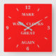 Decor artístico de muro de Parede Quadrado e decorativo em casa fornando acessório decorativo para decoração impresso com um Excelente Make America Novamente tocando em palavras e nomes de produtos com texto de cinza de luz no estilo de fundo vermelho MAGA pelo compro impressão de FabricSeal a pedido no endereço Zazzle.com #ZazzleMade https://www.zazzle.com/store/thefabricseal TheFabricSeal ©️ Original. Esta é uma peça de palavras da famosa citação do Presidente Donald Trump "Make America Excelente Again" Estes icônicos MAGA vermelhos e brancos populares devem ter produtos que não só fazem uma declaração de tendências, como também mostram o vosso apoio ao Presidente Trump e a sua visão de Tornar o Excelente Americano novamente. O vermelho desenhar a maior atenção, e está ligado a emoções fortes como raiva, paixão e amor. É universalmente usado para significar coragem, poder, força e perigo. Clique no botão "Personalizar" para torná-lo seu próprio produto personalizado ou monograma. Personalize facilmente este produto adicionando nomes, iniciais, frases, texto, foto, logotipo, cor, trabalho de arte ou design. Personalize-o com seu nome, iniciais, monograma ou texto para um design exclusivo de chic. Você pode alterar a cor do texto e o estilo da fonte usando a opção personalizá-lo. Design seu. Faça Isso Seu. presente de excelente para a família, amigos e para você, é claro. Aproveite a sua experiência de compro. Pegue O Seu Hoje. Obrigado. Esse relógio exclusivo de parede de alta qualidade é vibrantemente personalizado com o processo AcryliPrint®HD e apresenta um slot pré-instalado de backside para facilitar o enforcamento e um design sem tique. Todos os produtos e designs de trabalho de arte em nossa loja podem ser personalizados com texto de sua escolha, se você precisar e quiser continuar os processos de personalização. Obrigado por escolher, procurar e comprar no TheFabricSeal.