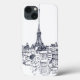 © Avery Tillmon/Apple selvagem. Um esboço preto e branco da torre Eiffel.