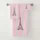 Aproveite nossas toalhas de banho em torre de bife de listras brancas e rosa.