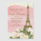 Cor d'água rosa e ouro Paris, França / Torre Eiffel Convite de íman 16 festa de aniversário doce com brilho dourado brilhante. Personalizado com o seu nome e informações de festa.