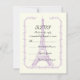 Cartão RSVP roxo da Torre Eiffel de Paris. Um cheio de classe e finesse de design clássico, com a Torre Eiffel em roxo claro em uma borda úmida sobre fundo de marfim.