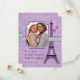 Este doce Salve a Data como tema parisiense para um olhar romântico. Ele apresenta uma ilustração de linha da Torre Eiffel com dois corações e um plano de fundo padrão. Paleta de cores roxa, preta e cinza. Adicione sua própria imagem e texto. É excelente para um casamento de destino ou um casamento de tema francês. Vai ajustado um casal romântico que gosta de viagem, ama a cultura francesa, ou para casais de diferentes origens culturais.