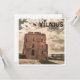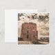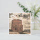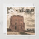 Cartaz Vintage de Vilnius. monumento da torre Gediminas em Vilnius, Lituânia. Pequena torre de tijolos de laranja com bandeira lituana na colina contra a bela vista no centro histórico da cidade de Vilnius.