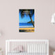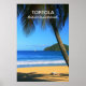 Praia de uma ilha sombreada de Palm, com vista para o mar de Caribe turquesa, "Lamberts Beach", Tortola, "Ilhas Virgens Britânicas"
