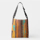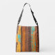An abstract design of a rusty, gritty surface with peeling paint covers this tote bag. Vibrant shades of orange, brown, and turquoise make this tote bag a standout!