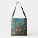 Golden petals and leaves set against a turquoise background cover this pretty tote bag.