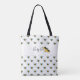 Bumble Bee é uma das doze designs da minha coleção de "Abelhas Ocupadas". Este design apresenta um padrão de pequenas abelhas, em ambos os lados, deste saco de tote All-Over-Impressão. Cada design tem uma banda branca, com texto que diz, "Abelha Ocupada" e arte de abelhas. Você pode personalizar o texto. Estas bolsas são excelentes para tarefas, compras, viagem e fazem presentes de excelente