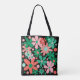 Abstrato flores e pontos em verde, coral e cor-de-rosa no saco de tote preto. Excelente de presente.