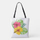 Pegue todas as suas necessidades de praia e piscina e na moda e bolsa divertidas. Aloha te colocará no espírito do oceano e do tempo das ilhas. Terminado nas costas com um grande conjunto de hibisco e verde.