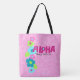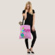Pintor cor-de-rosa e turquesa. Flores de cartoon divertidas, femininas e caprichosas ajudam a enviar a mensagem de que Aloha significa olá! Este design vem de várias maneiras coloridas. Esta bolsa de praia é reversível.