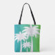 Abraçar este design de palmeiras tropicais moderno, divertido, de três, silhuetas de árvores verdes e brancas profundas contra um fundo verde e azul-ombre. Personalize o bolso frontal do design com seu nome ou outro texto. Tenha boas vibrações toda vez que você olha para esta imagem, sabendo que palmeiras simbolizam paz, abundância e sucesso.