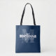Um saco azul de tota simples e na moda com monogramas... acessório de moda com um toque pessoal para ela.