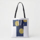 Shoulder tote bag with blue and gold chrysanthemum flower nagajuban design created by Alan Skyrme.