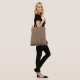 Esta bolsa de tota tem um design moderno século médio de linhas verticais com retângulos acima, ambos em tons de marrom, repetidos sobre a design.
