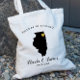 Saco de presentes de boas-vindas para convidados fora da cidade para o seu casamento, com imagem de Illinois, com coração de ouro. Preencha a bolsa com seus doces favoritos.