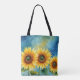 Os ouros quentes dos girassóis trazem uma alegre e ensolarada vibração ao seu carregar do dia a dia. Projetado para conforto com alças resistentes que se sentam facilmente no ombro. Transforme as tarefas comuns em uma experiência na moda com este elegante bolsa floral. Criado com tecido de canvas de qualidade para uso duradouro e manutenção fácil. Saia na multidão com um padrão único de girassol de cor d'água que é a tendência e o eterno.
