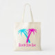 Saco de tota de canvas tropical com aparência de excelente, com gráficos em estilo silhueta de duas palmeiras coloridas cor-de-rosa e aqua. O texto cor-de-rosa abaixo lê Beach Bum Bag e está pronto para personalizar e ler o que você quiser. Excelente para todos os dias, praia, piscina, compro, trabalho ou escola.