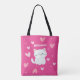 Esta bolsa de tote de na moda cerise apresenta um design encantador de um encantador desenho de gato branco, cercado por um conjunto mesmerizante de corações cor-de-rosa. O gato branco giro é representado com detalhes cativantes, mostrando seus olhos brilhantes e expressivos, um nariz rosa encantador e sussurros carinchosos. A postura lúdica ou relaxada do gato adiciona ao charme geral do saco, enquanto os corações cor-de-rosa circundantes criam um humor carinhoso e afetivo, fazer-o como um acessório verdadeiramente atraente e adorável.