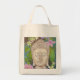 Cara de Buda com flores nesta bolsa de tote de mercearia.