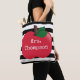 Quer você seja professor ou queira mostrar seu apreço a um professor (ou talvez você apenas ame maçãs) esta bolsa é perfeita com listras na moda preto e branco e uma maçã vermelha bonito, personalizada com um nome. Design está na frente e atrás.