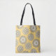 Um saco de totas com o meu Padrão Mandala 1 impresso na frente contra um fundo amarelo. Reverso e alças em preto simples.