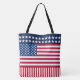 Esta bolsa de tote é perfeita para celebrar o 4 de julho e durante todo o verão, mostrada com estrelas patrióticas divertidas e bandeiras impressão. Tamanho grande mostrado Precinta preta. Personalize este item ou comprar conforme projetado.