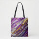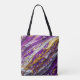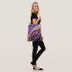 Um design abstrato em roxo, dourado e branco, que se assemelha a terreno acidentado, cobre esta Bolsa de Ombro.