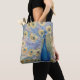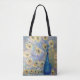Um belo pavão enfeita esta bolsa de tote resistente. Inspirada por uma pintura original em camadas mestiças de Judy Sorrels, ela apresenta um alto vívido e ouro, com textura.