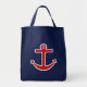Uma âncora vermelha e creme dá a esta bolsa estilo náutico. Use esta bolsa náutica de tote como uma bolsa de verão, bolsa, bolsa de presente de sacola, saco de livros, bolsa de tote do professor, saco de viagem, bolsa de viagem, bolsa de férias, etc.... Os designs são da arte original.