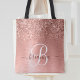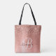 Personalize facilmente este design de saco de tota chic com tendência, com brilho bonito de ouro rosa em um fundo metálico escovado de rosa dourado.