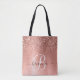Tote Bolsa de rosa de Monograma com Glitter de Metal Br
