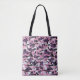 Diversão em Cachorro e Camo Osso Impresso Tote Bag em cores rosa/roxo! Brincadeira no camo com um monte de doggos numa história de cor floral.