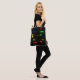 Saco de compras de bolsa incomum com camaleões multicoloridos, arco-íris, apanhando borboletas com línguas longas.