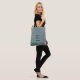 Tote Cinza metálica com placa de texto na bolsa
