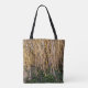 Esta Tote Bag apresenta uma fotografia original de ZoeSPEAK das raízes de uma palmeira. Um furacão arrancou a árvore, e o complicado sistema radicular foi exposto, com as raízes loiras e brancas realçadas parecendo cabelo, penduradas na grama verde abaixo.