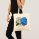 Hídrangas azuis personalizadas para o saco com o nome modelo. Uma flor azul clara e uma decoração de flor azul brilhante de um lado deste saco de tecido, com opções de cor de alça. Ou escolha outro estilo.