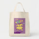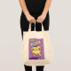 Uma menina enlouquecida com doces brilhantes. A carta de mão forma sua cabeça e ela está vestida de amarelo, segurando um pirulito, e dizendo, "Eu quero doce!" Esta bolsa de canvas é uma bolsa expressiva divertida para qualquer amante de doces e também daria um presente único para o fabricante de doces.