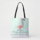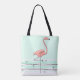design de na moda com um toque retrorreflector com um flamingo cor-de-rosa na água contra um fundo verde-claro. Um design personalizável para você personalizar com seu próprio texto, imagens e ideias. Uma imagem de arte digital original criada por QuirkyChic.