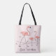 Tote Flamingos Rosa Trio 2 Texto por todo o bolsa
