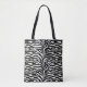 Saco de tota impresso num padrão de zebra digital listrado - preto clássico e branco