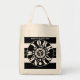 Bolsa natural de mercearia com frente preta com círculos concêntricos preto e branco design com o logotipo Y-NOT-ME no meio rodeado por "VÁ EM FRENTE VOCÊ PODE FAZÊ-LO", que é cercado por "CENTRO DO UNIVERSO", que é cercado por "NOVA YOURK, NY" com "MANTER NYC-PLASTIC FREE" no topo. Este design é um grito para Nova Iorque, Nova Iorque, um líder mundial.