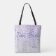 Lilac Hanging Wisteria Team Bride Tote Bag. Linda e esperta, longa e pendurada wisteria roxa em um fazer prateado de fundo a wisteria realmente pop. presente de excelente para a sua festa noiva. Fácil de editar com título ou nomes para todo o grupo!